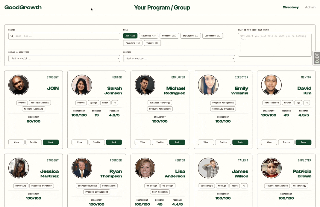 A personal growth agent who knows your goals, finds the right people, makes the introduction, and keeps things moving.