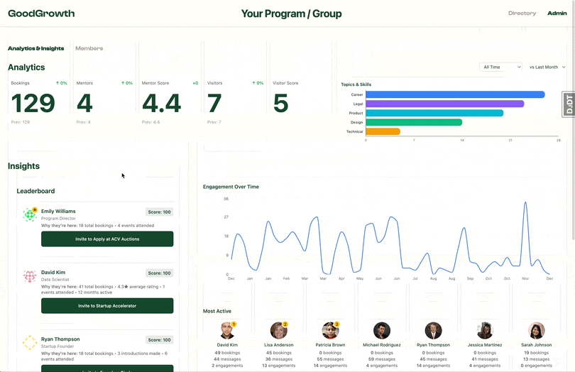 No more black-box mentorship. Track who's engaging, what's resonating, and whether your program is delivering with detailed reports.