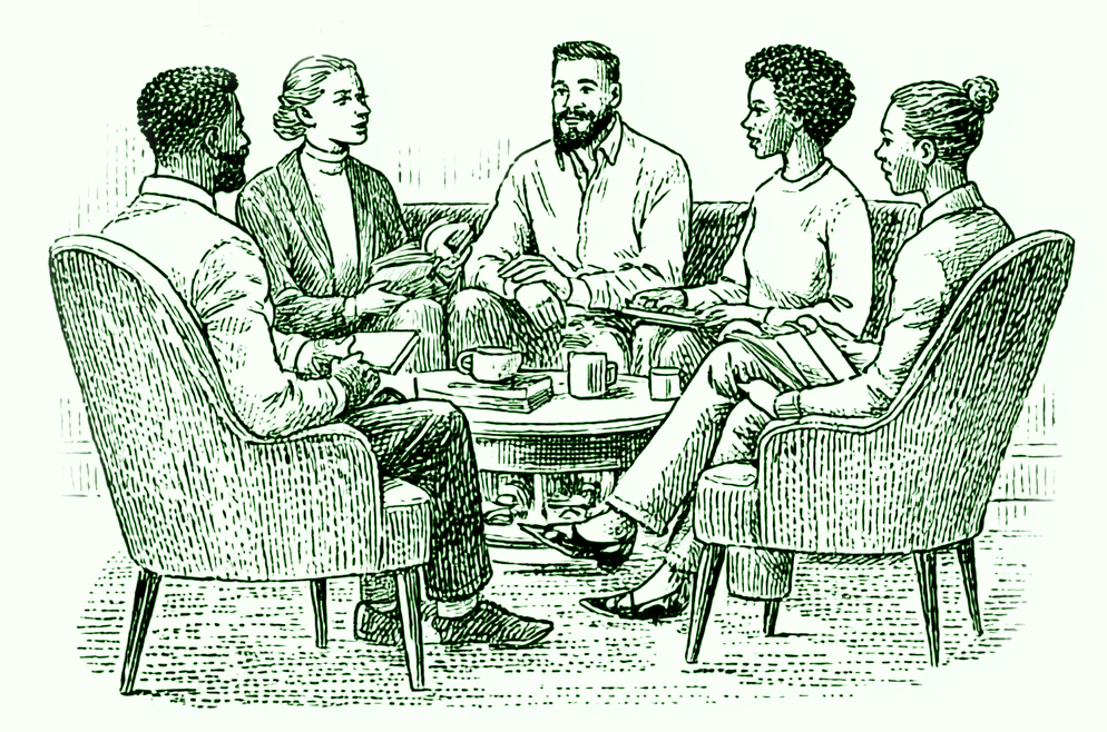 Small, curated cohorts where real work happens. Masterminds and mentorship circles designed for candid problem-solving—not the social facade.